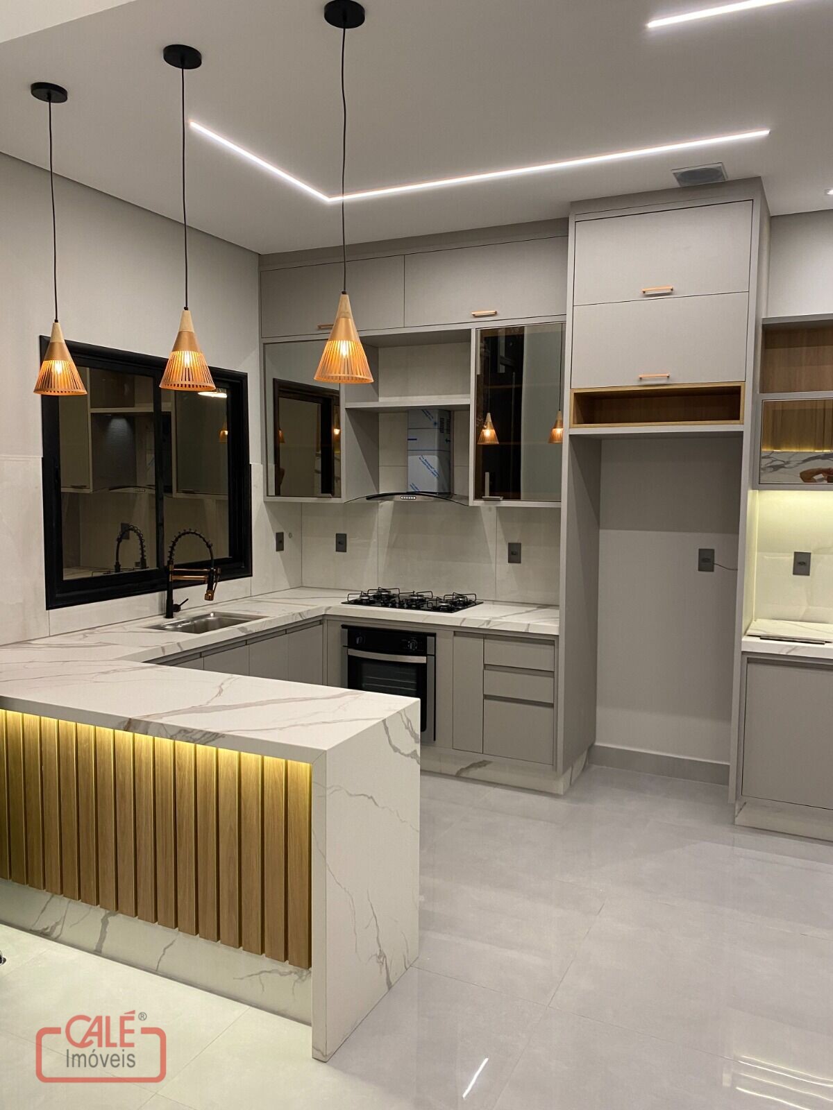 COM 03 DORMITÓRIOS (SENDO 01 SUÍTE COM DUAS CUBAS, GABINETE, ESPELHO E DUCHA; CLOSET COM ILUMINAÇÃO, 02 CRIADOS MUDOS, CABECEIRA ), SALA DE TV COM PAINEL E JANTAR COM PÉ DIREITO ALTO, COZINHA AMERICANA PLANEJADA COM COOKTOP, FORNO, COIFA, WC SOCIAL , ÁREA DE SERVIÇO COBERTA EXCELENTE ESPAÇO GOURMET COM CHURRASQUEIRA EM INOX, INFRA ESTRUTURA PARA AR CONDICIONADO E AQUECIMENTO SOLAR, ILUMINAÇÃO LED NA CASA TODA , JARDIM E GARAGEM PARA 01 VEÍCULO + 01 VAGA