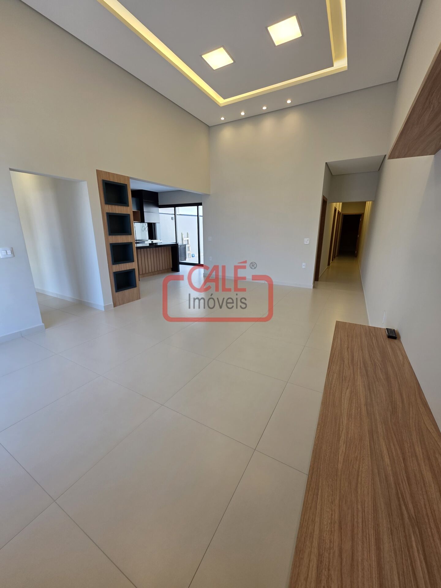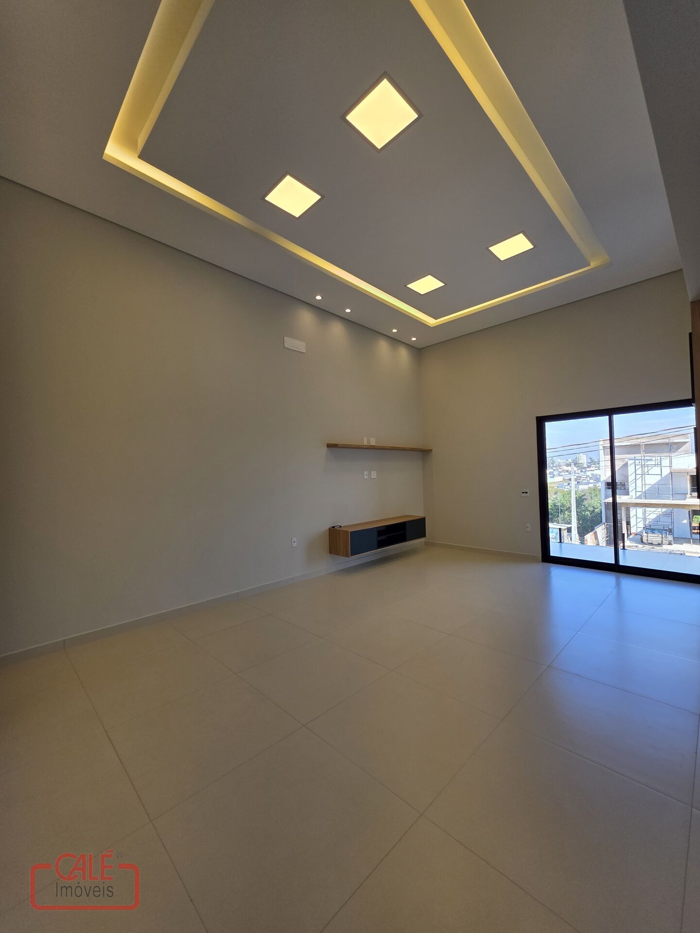 - Sala ampla em conceito aberto com pé direito duplo, proporcionando sensação de amplitude e elegância;