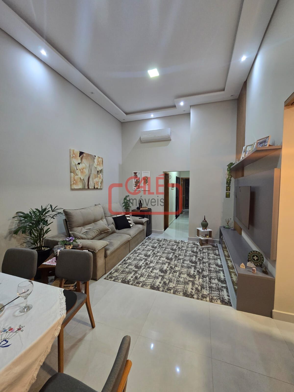 Bem-vindo ao seu novo lar na Vila Rica. Esta casa térrea une sustentabilidade e design moderno, entregando economia real com sistema de energia fotovoltaica já instalado. Ao passar pela fechadura eletrônica, você é recebido por uma ampla sala com pé direito alto e sanca iluminada, onde cortinas sob medida criam um clima acolhedor.